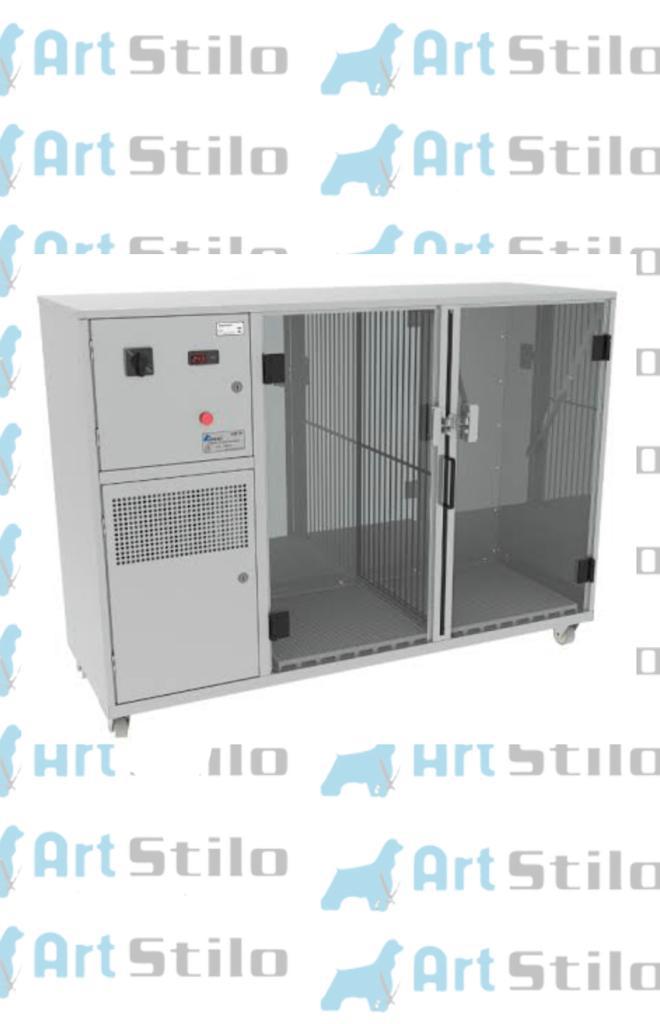 Máquina confeccionada em aço INOX com chapa INOX com 1,5 mm de espessura, porta de vidro temperado com 8mm de espessura e duplo sistema de filtragem para manter componentes como motor, isolados de eventuais pelos e poeira. Possui degrau interno, divisória interna removível e termostato controlador de temperatura.